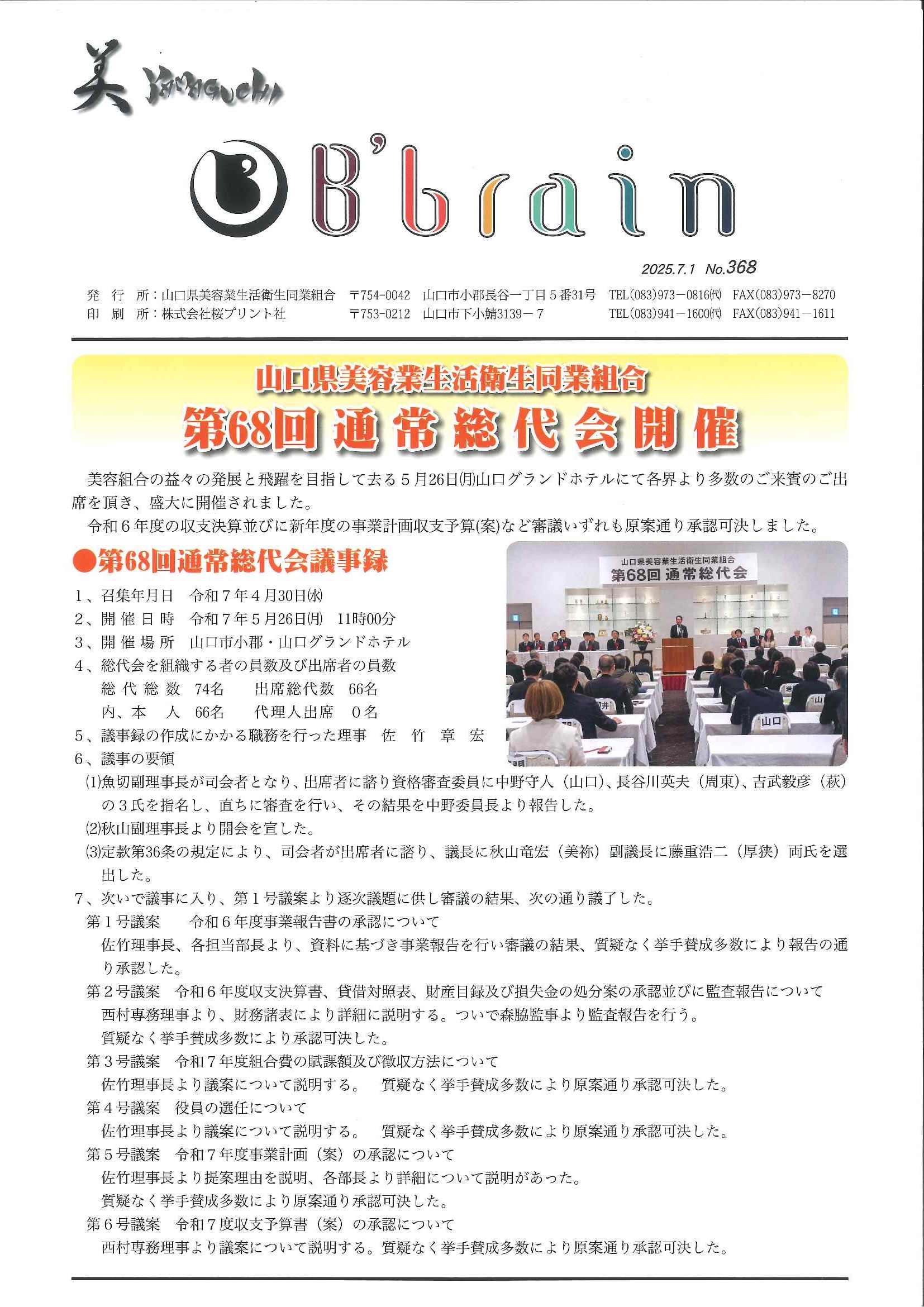 令和7年5月26日(月)山口グランドホテルにて、山口県美容業生活衛生同業組合 第68回通常総代会が開催されました。多くの来賓の方にもお越しいただきました。 皆…